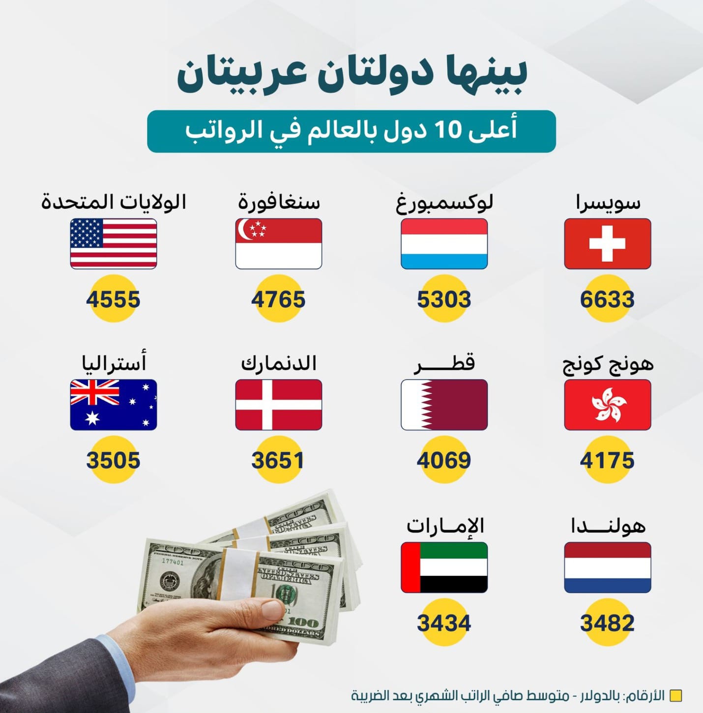 دولتان عربيتان ضمن قائمة الـ 10 الأعلى في الرواتب عالميا