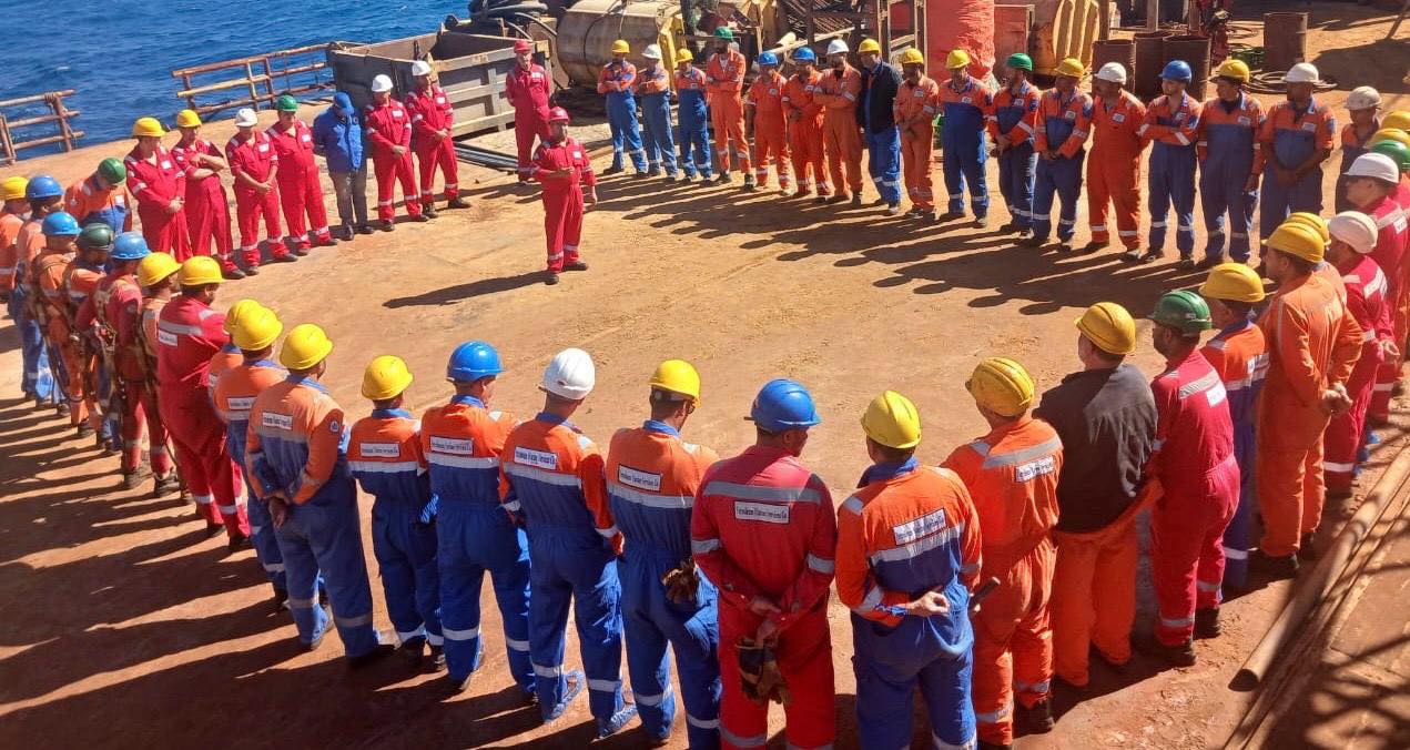 خدمات البترول البحرية تنظم وقفة بجميع مواقعها احتفالا بالعيد الخمسين للبترول