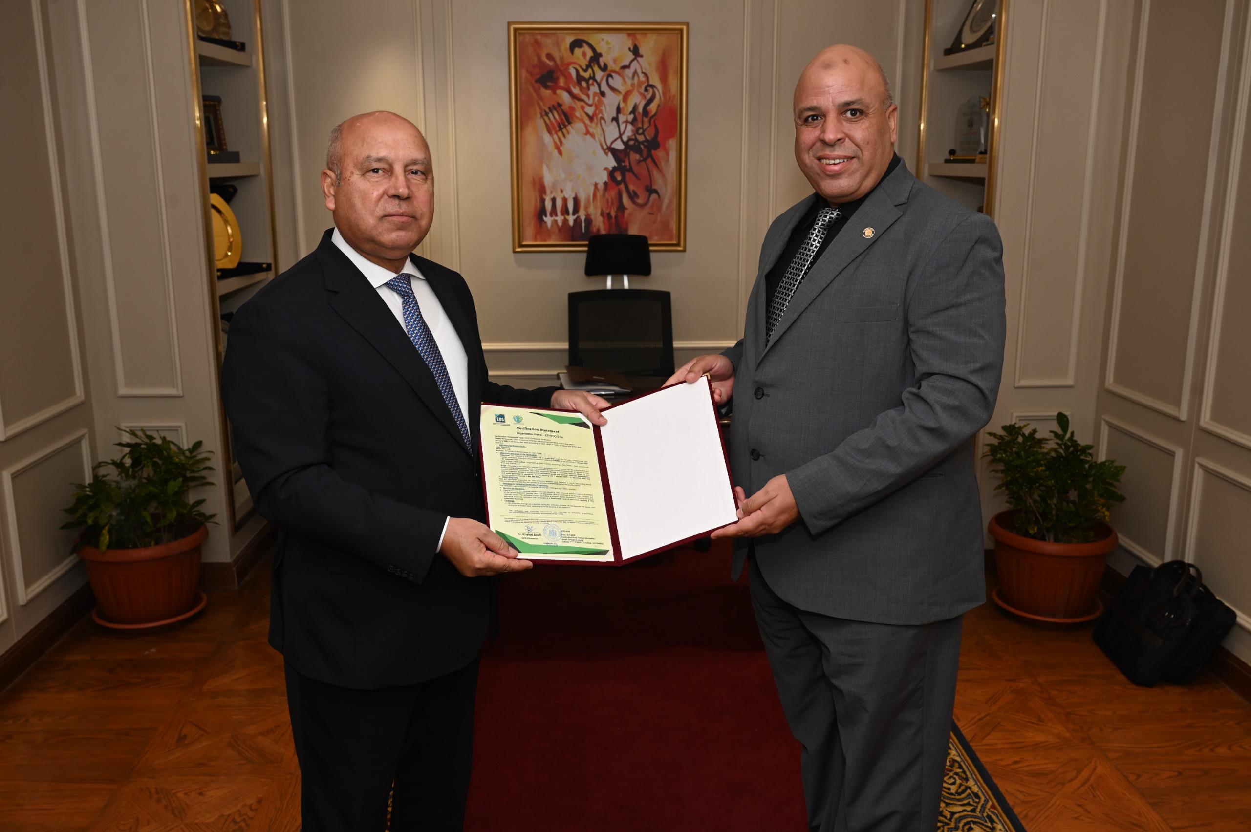 وزارة الصناعة تكرم شركة إيثيدكو لحصد شهادة التحقق للبصمة الكربونية